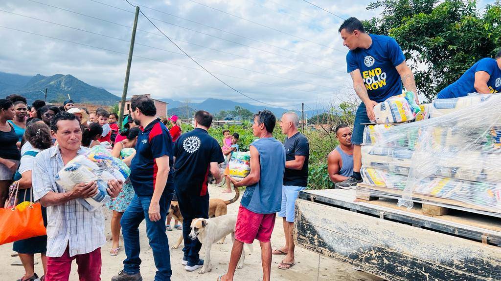 Com recursos da Fundação Rotária o Rotary Club de Bertioga Forte entregou no Bairro Chácaras Vista Linda, 500 cestas básicas e 500 kits de higiene pessoal para as famílias que foram atingidas pelas enchentes no Carnaval. Com estas entregas já somam 1.000 famílias beneficiadas.