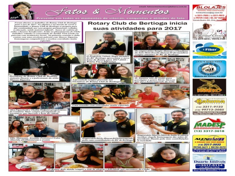 Na última edição do Jornal Da hora de Bertioga, na Coluna Fatos Momentos, o Rotary Club de Bertioga foi destacado pelas suas atividades neste início de ano.