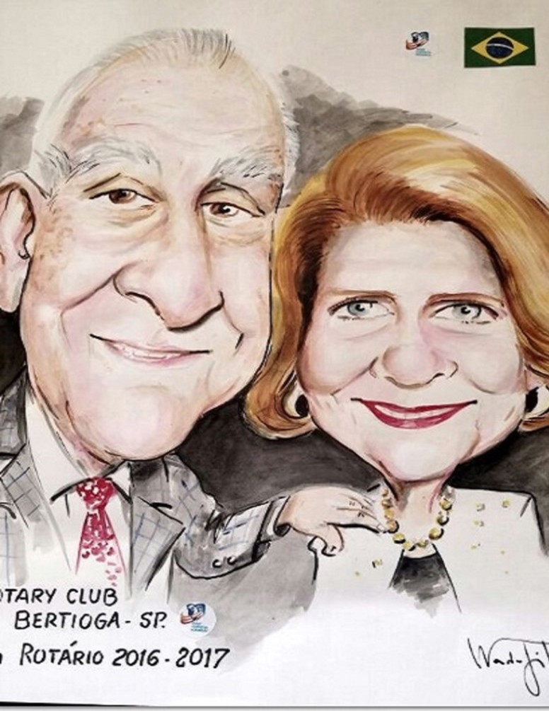 O Rotary Club de Bertioga presenteou o presidente do Rotary Internacional John Germ e Judy com uma linda caricatura na ocasião de sua visita ao RC de Santos.