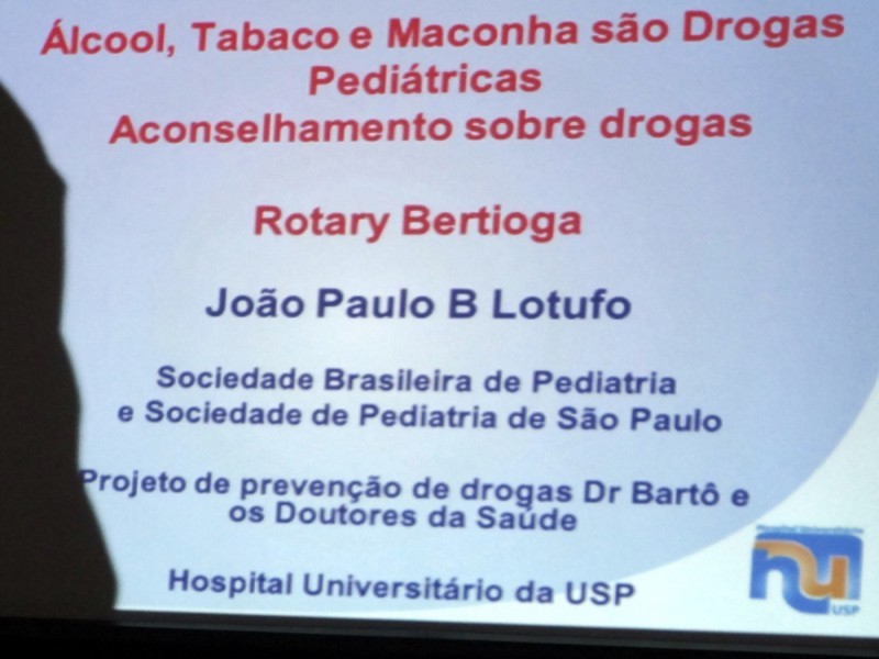 Inspirador ... com estas palavras podemos definir o que pudemos ouvir e conhecer do Dr. João Paulo Becker Lotufo... pediatra que se comoveu com adolescentes reféns de alcool, maconha e cigarro que passaram pelo seu consultório. Hoje procura passar suas experiências com jovens mostrando fatos concretos e estatísticas para prevenção deste mal tão comum nas famílias brasileiras. O Rotary Club de Bertioga - presidente Antonio Flavio Duarte e o Rotary Club de Guarujá Vicente de Carvalho - presidente Luis Henrique Negrão agradecem de coração a excelente palestra proferida pelo renomado profissional Dr. Lotufo.