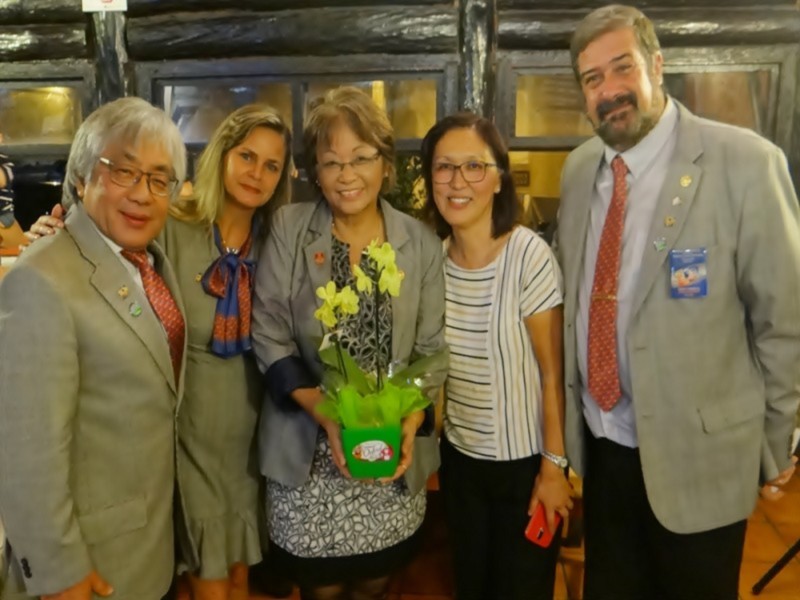 A companheira Olga Tamashiro também recebeu uma singela homenagem das mãos da presidente da Casa da Amizade Regina Rodenas.
