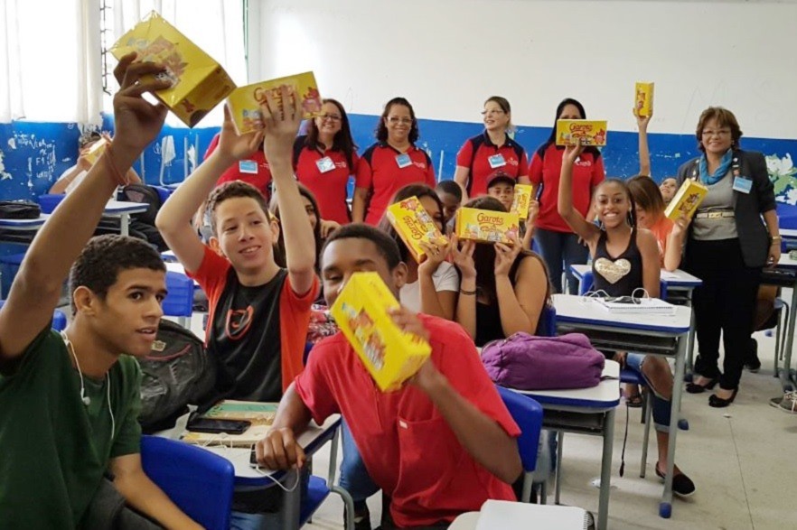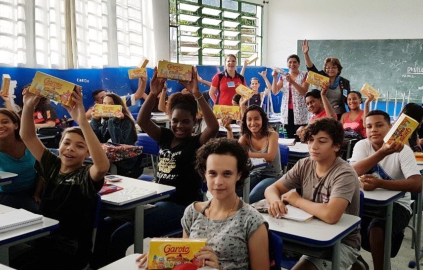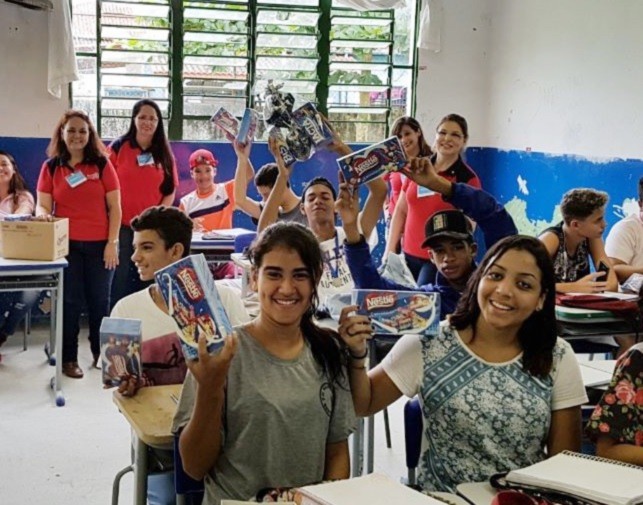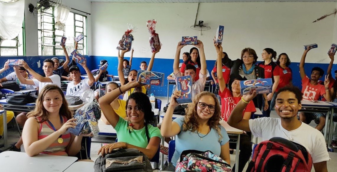 Entregamos chocolates arrecadados na Páscoa Solidária para cerca de 400 alunos no Colégio Willian Aurelli em Bertioga.