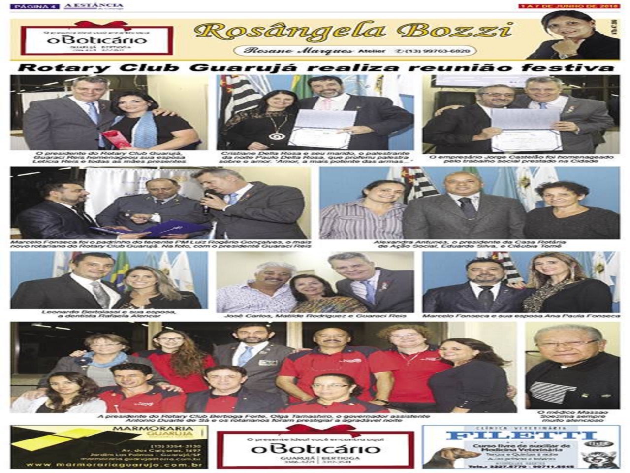 Mais uma vez o colunista social José Flavio prestigiou o Rotary Club de Bertioga Forte mostrando nossa participação na reunião conjunta com o Rotary Club de Guarujá.